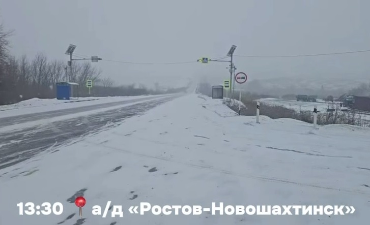 Ведомство опубликовало видеозапись с трассы Ростов–Новошахтинск, на которой зафиксированы сложные погодные условия и заснеженное дорожное покрытие.