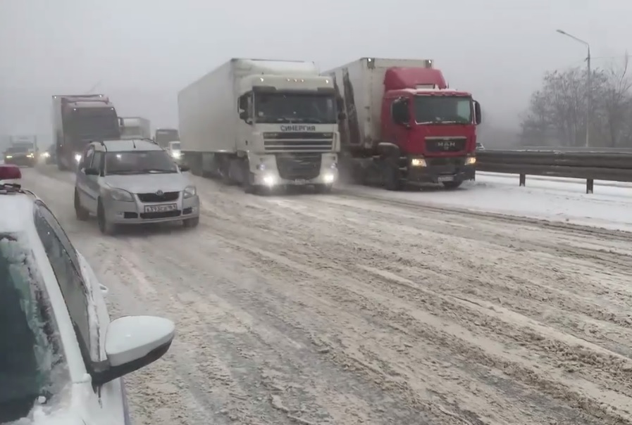 В Аксайском районе на 1062 километре трассы М-4 «Дон» из-за неблагоприятных погодных условий и заторов движение осложнено, информирует Госавтоинспекция Ростовской области.