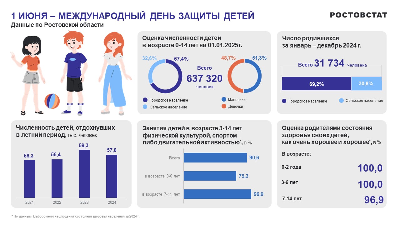 В первый день лета отмечается Международный День защиты детей, и самое время взглянуть на статистику, отражающую жизнь юных жителей нашей области, сообщает Ростовстат.
